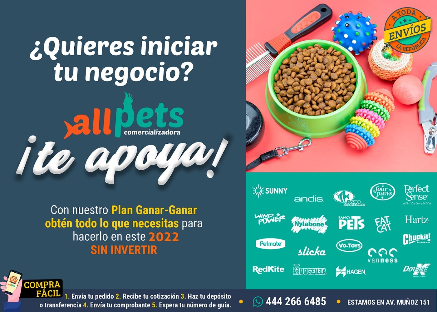 En All Pets Comercializadora te apoyamos como proveedor de artículos, accesorios y alimentos para perros y gatos, para que ofrezcas a tus clientes los mejores productos y generes más ganancias.